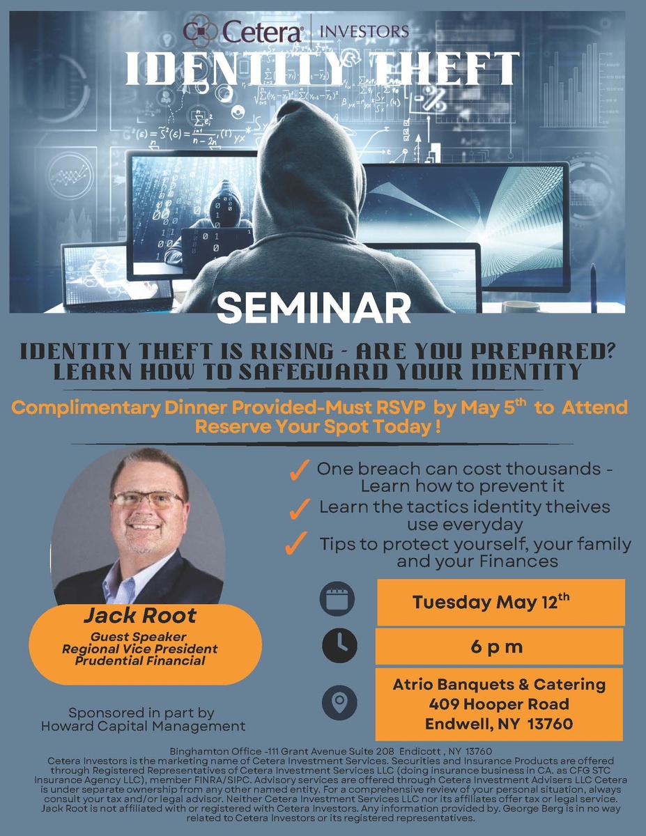Join us for an informative Identity Theft Prevention Seminar in the Binghamton area and learn how to protect your personal information, finances, and family from today’s most common scams. This free event will cover the latest identity theft tactics and provide practical tips to safeguard your identity.